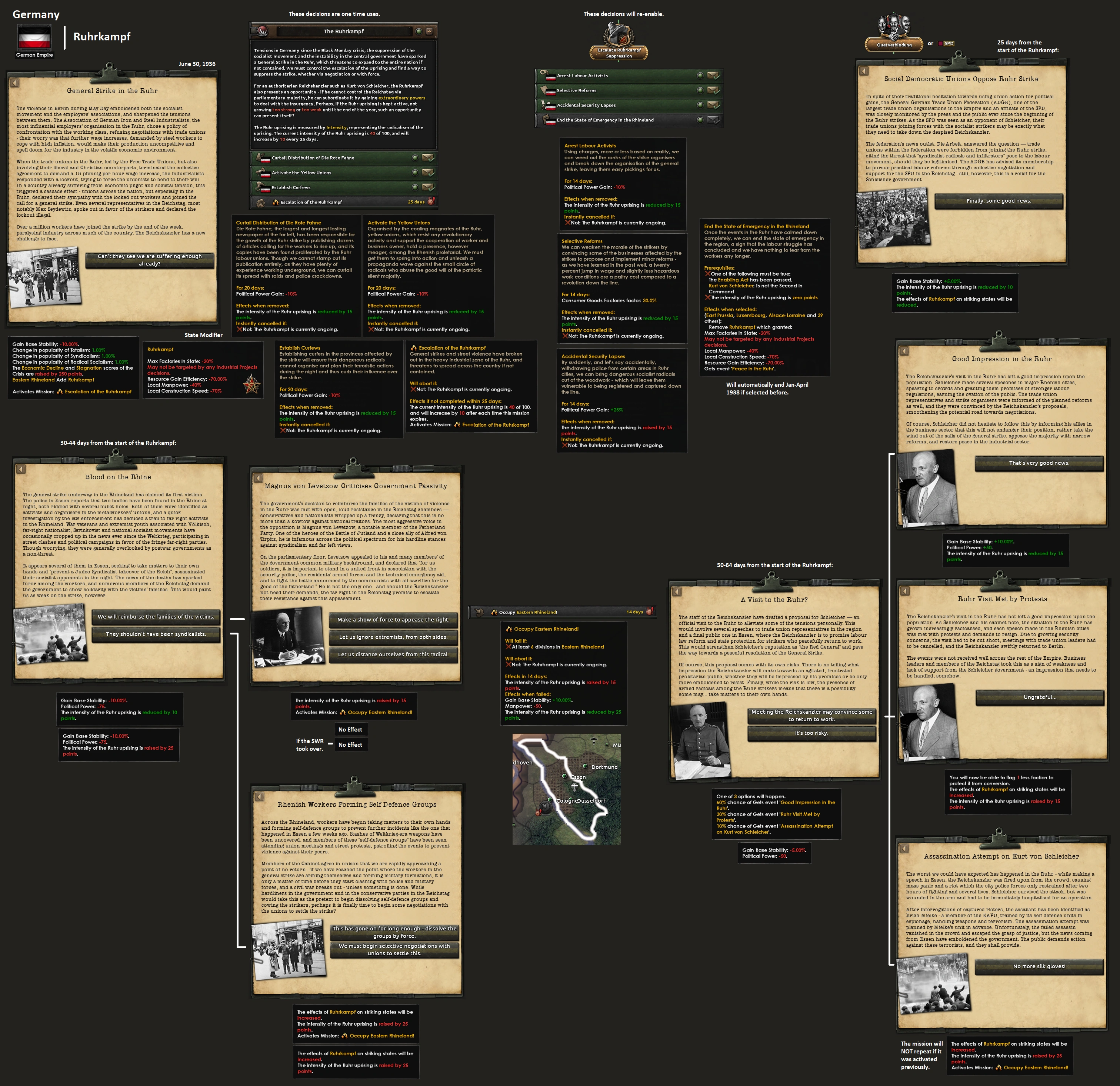 - In the Ruhrkampf, ensure that the Intensity of the uprising does not become lower than 25 or higher than 75 when the repeating mission fires.