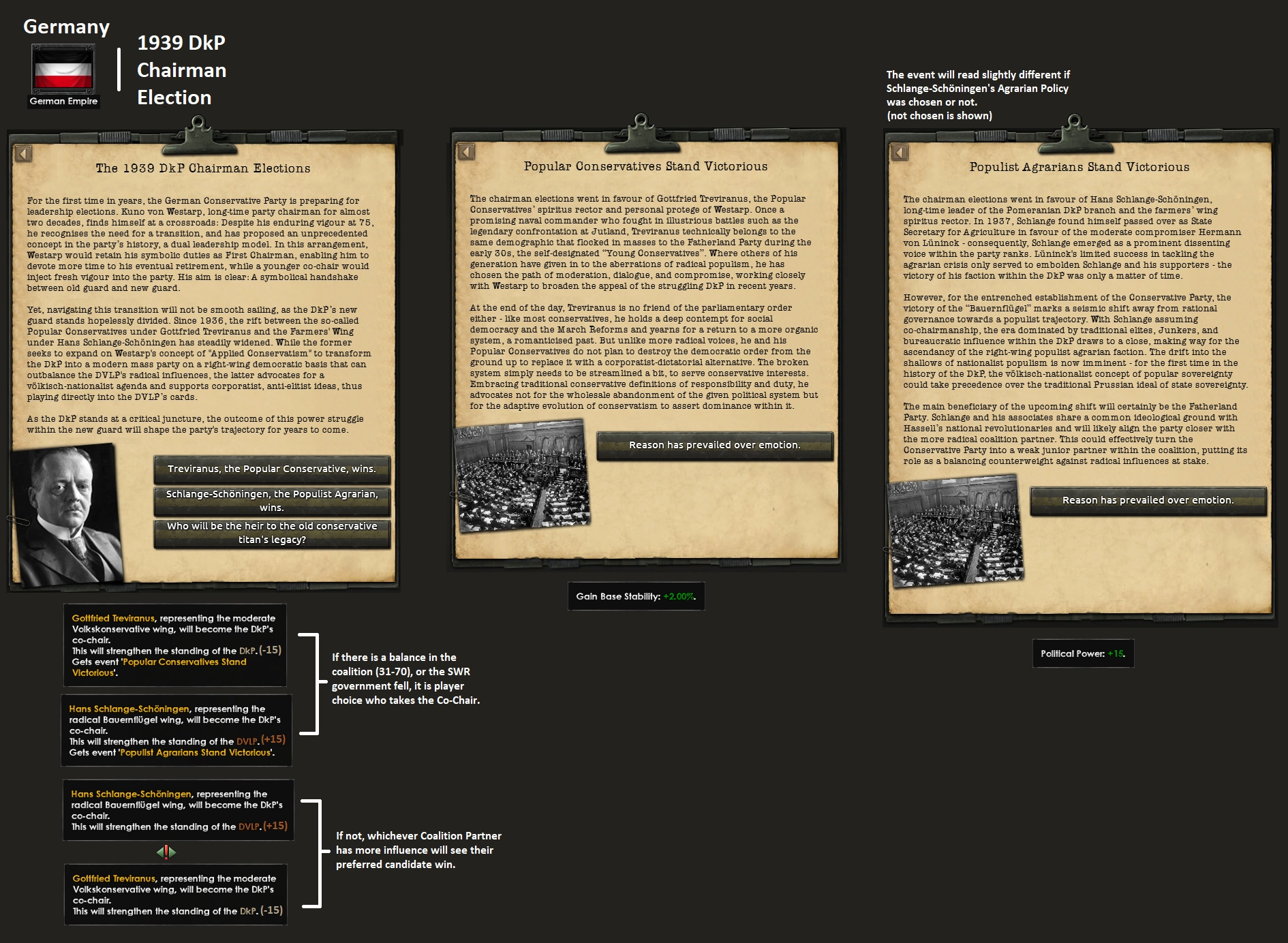 If Papen or the DVP comes to power, their branchs will end in a mutually exclusive focus: one which restores the monarchy under Wilhelm IV, and another which, for Papen empowers the pat aut wing of his party under Karl Jarres, or for the DVP empowers Papen and the German Bloc.