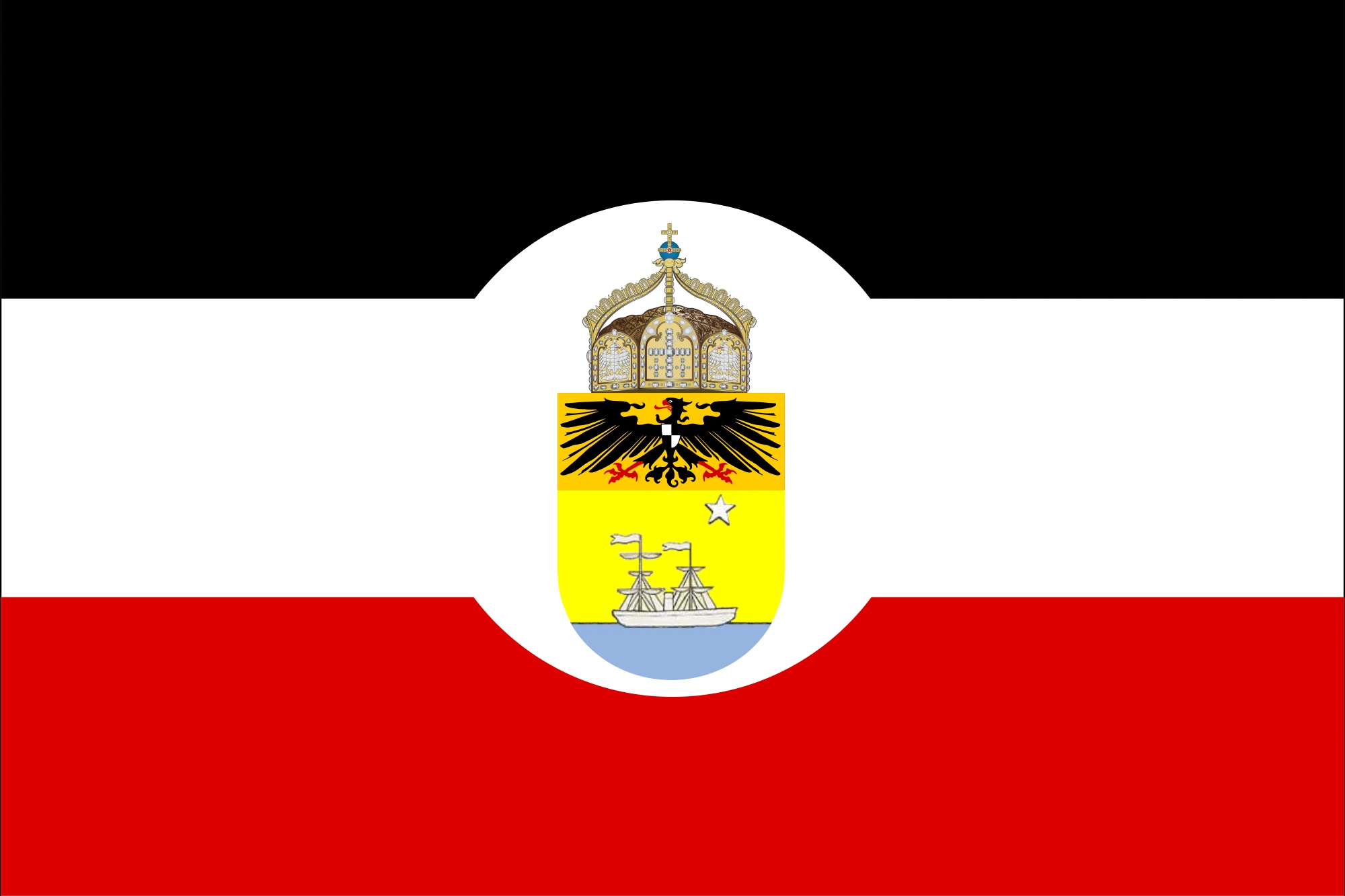 Subordinated to the Legation Council of the International Mandate for the Concessions, Settlements and Legations in China in Shanghai | Flag of the Legation Council Imperial German Tricolore used by civilian institutions like consulates |